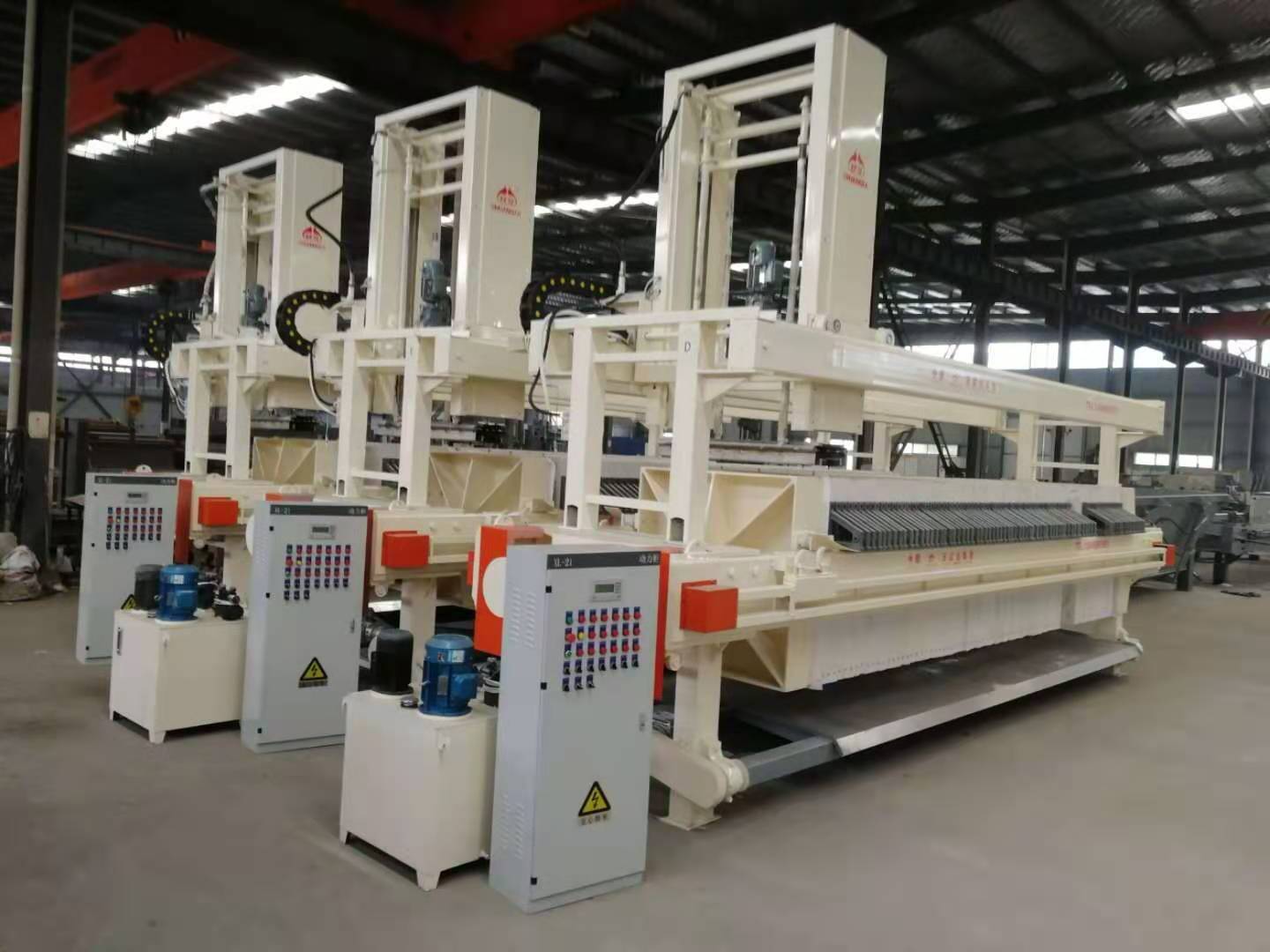 板框壓濾機(jī)適用于濾渣壓縮性高或接近不可壓縮性的泥漿。懸浮液中固體顆粒的適宜濃度<10%,操作壓力為0.3-0.6mpa。過濾面積可以根據(jù)使用的濾板數(shù)量增加或減少。板框通常為方形,濾框內(nèi)緣長200-2000毫米,框厚16-80毫米,過濾面積0.5-1200平方米。